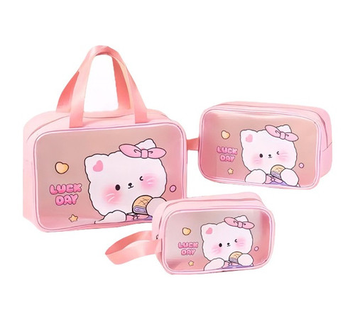 کیف سه تکه آرایشی فانتزی رنگ صورتی