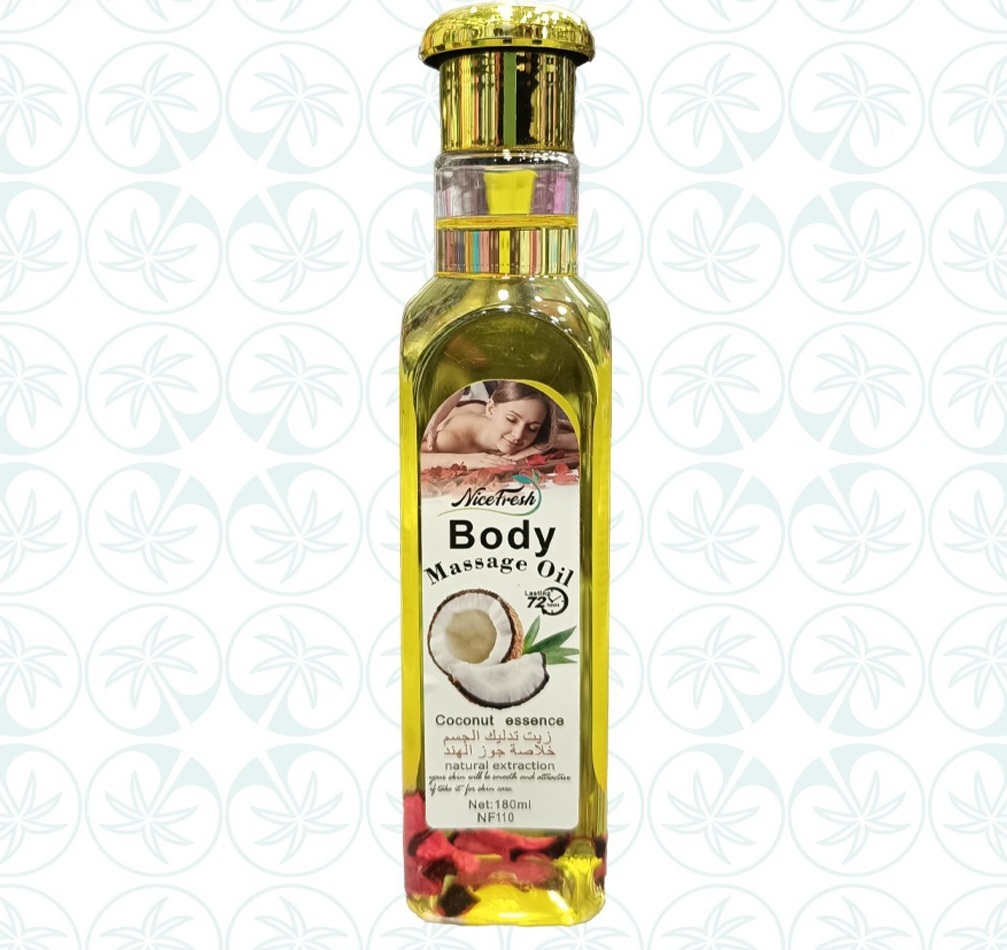 روغن ماساژ بدن نایس فرش با عصاره طبیعی روغن نارگیل (180میل) Body message Oil nice Fresh