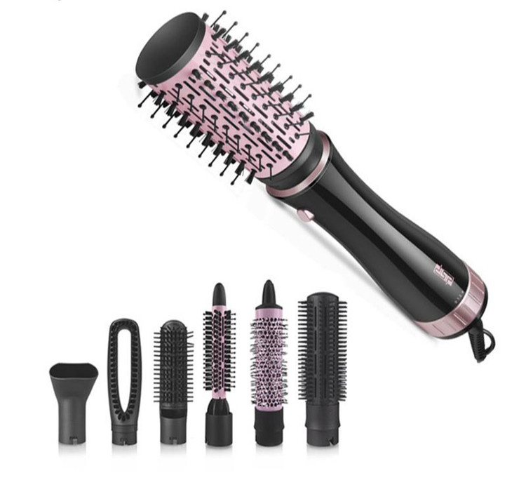 این محصول ساخت شرکت دی اس پی با رنگ مشکی طول سیم 1.80 و دارای چرخش 360 درجه ای است و دارای دکمه باد سرد می باشد این محصول دارای 7 عدد سری قابل تعویض برای فر کردن مو متمرکز کردن مو و دارای یک عدد برس می باشد